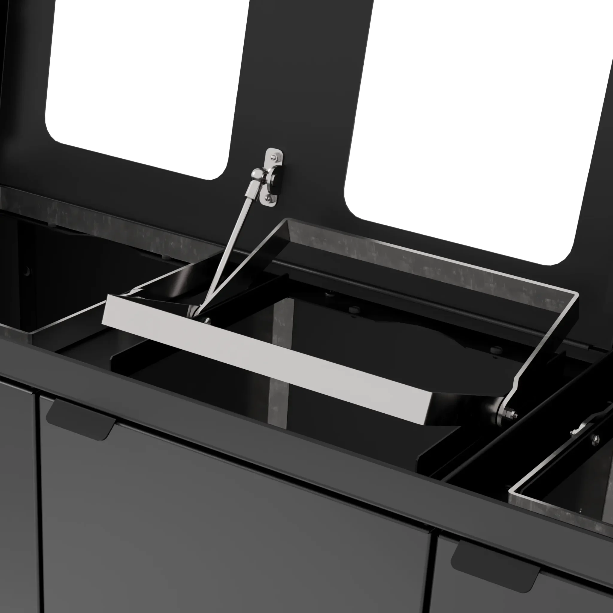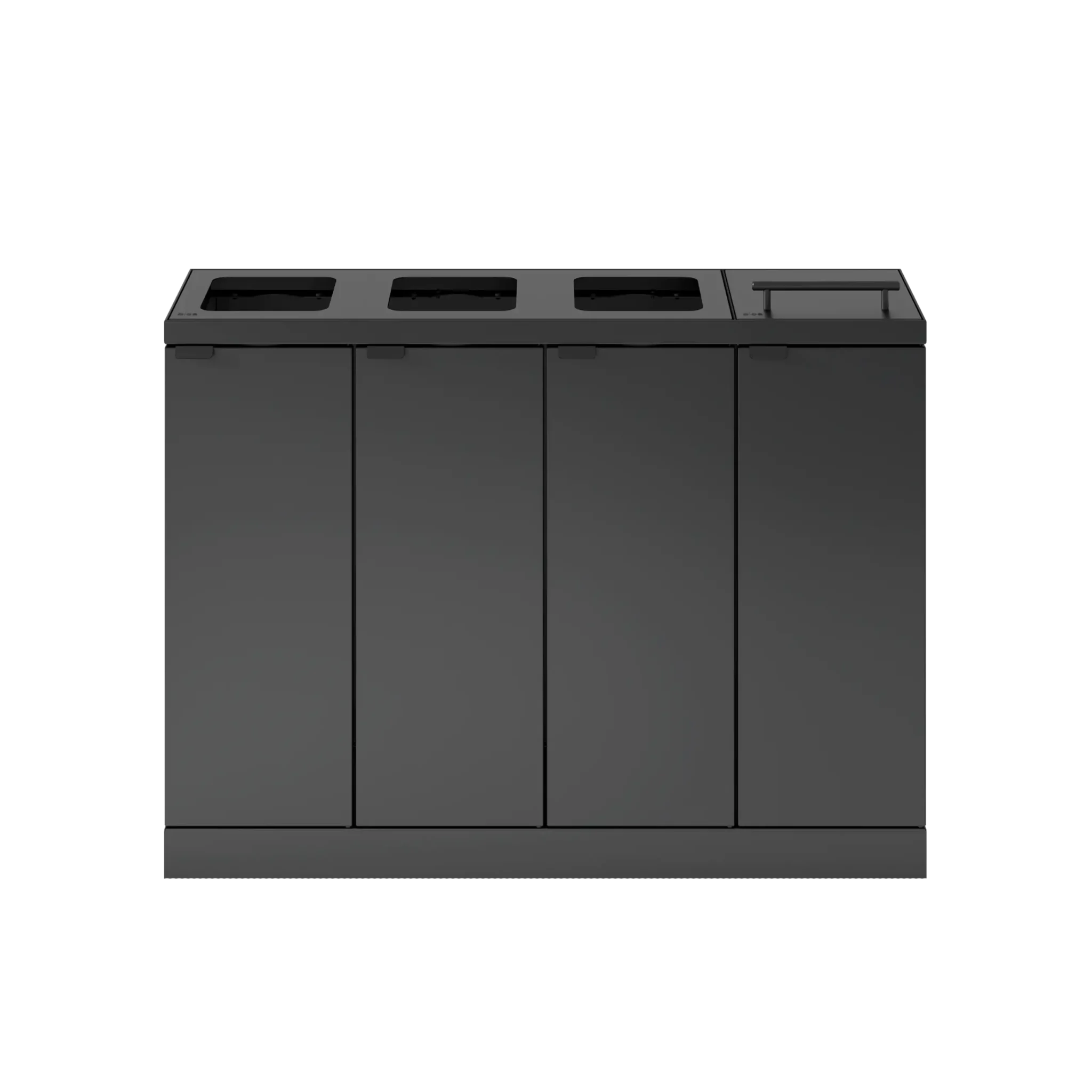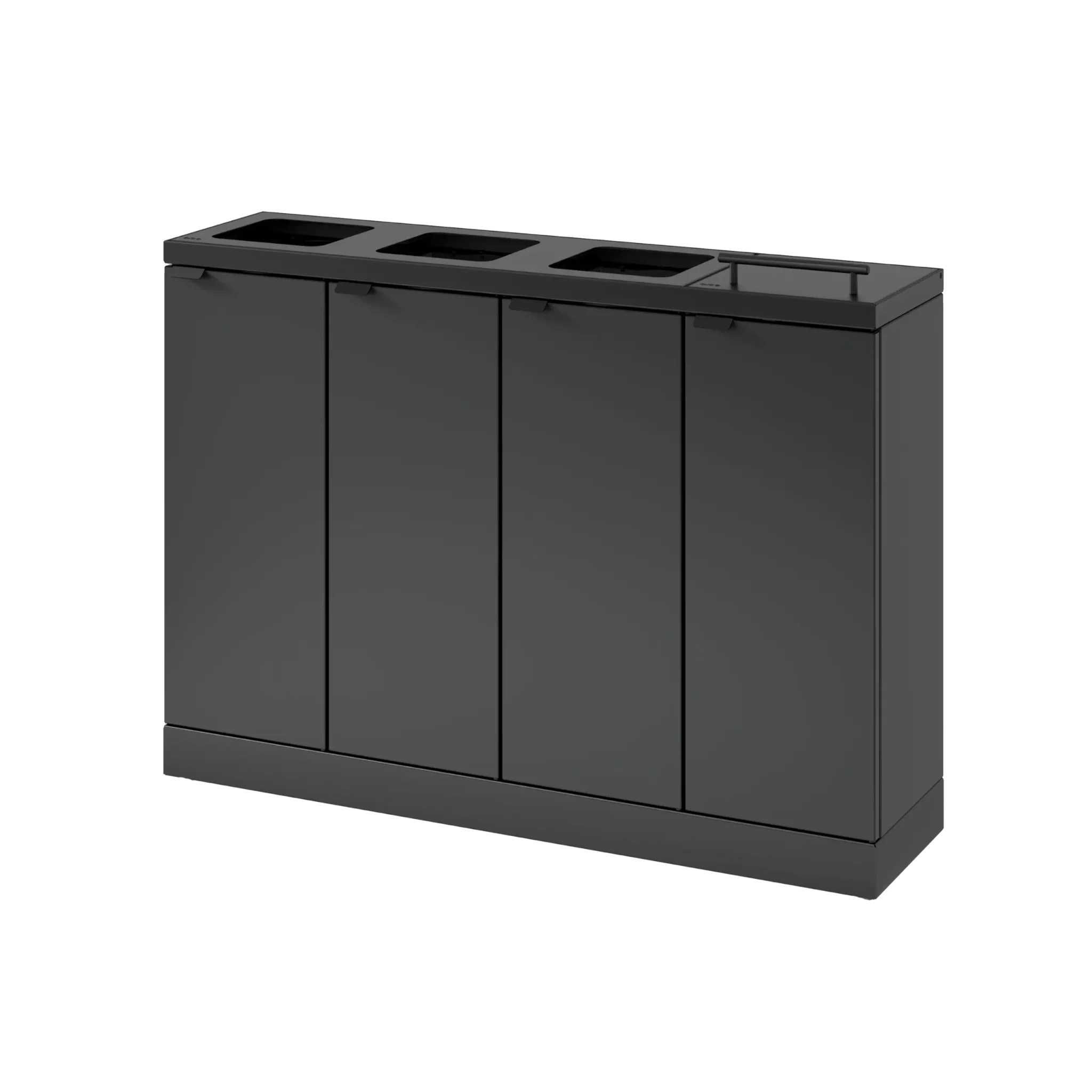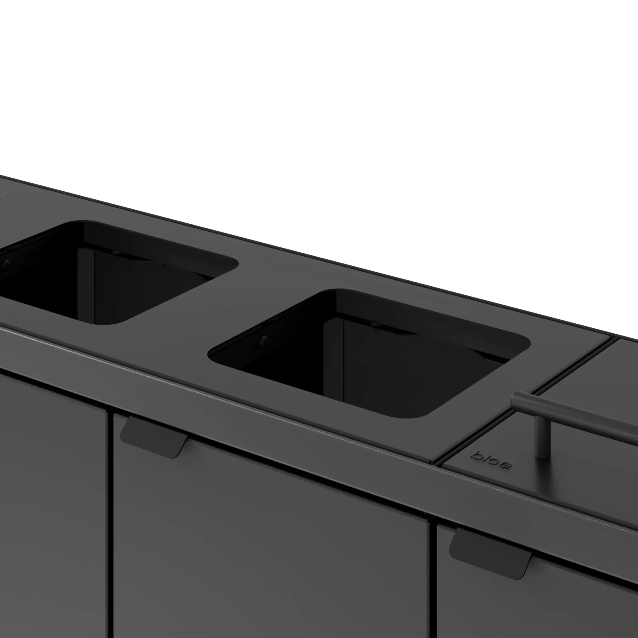 Fleksibelt affaldssystem fra Bica sikrer nem og brugervenlig affaldssortering på arbejdspladsen. Affaldssystemet er designet med 2 fraktioner med henholdsvis et åbent indkast og et med løftelåg. Formålet med låget er at minimere lugtgener og forhindre bananfluer ved sortering af madaffald. En rigtig smart løsning, hvis posen ikke tømmes så ofte.
